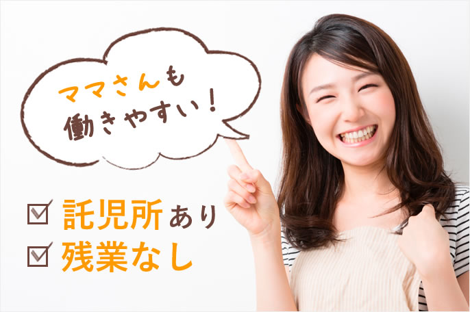 | コメント | しっかりリフレッシュできます残業がないので、仕事後の予定も立てやすくプライベートの時間はしっかり確保できます。ストレスフリーな通勤が可能マイカー通勤希望者には無料駐車場を完備しています!お子様がいる方... |